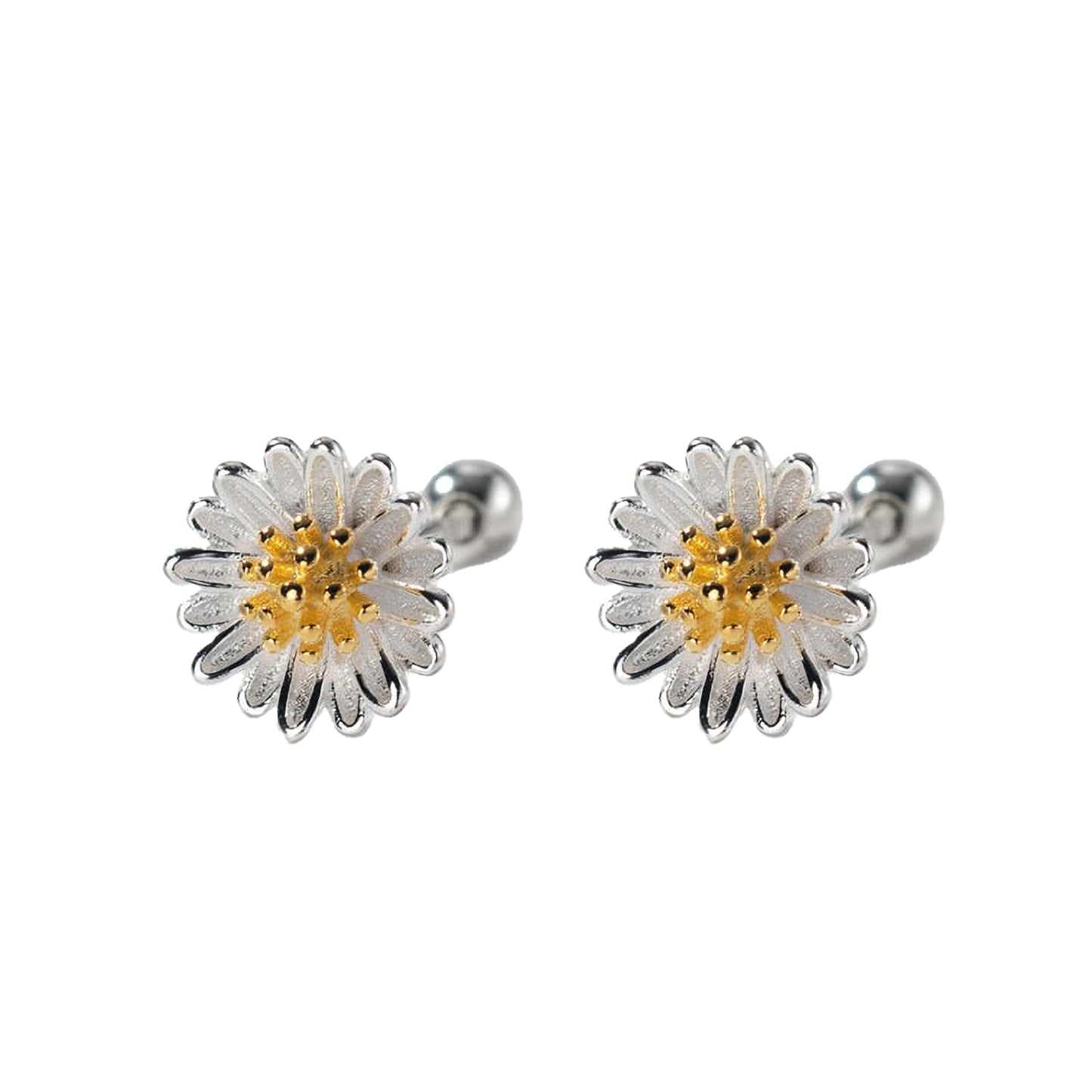 Delicados aros para mujer con forma de lindas margaritas. Estos aritos están fabricados en plata 925, con detalles en baño de oro.